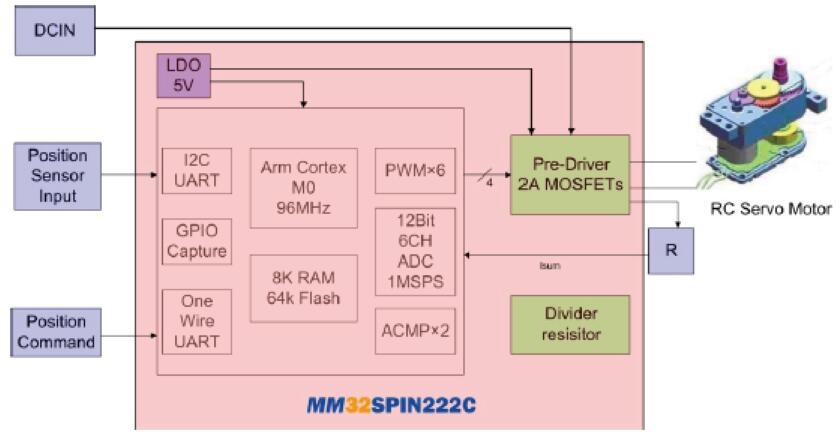 機器人舵機 MM32SPIN222C  ● 高效率,集成度高