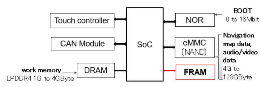 環(huán)境傳感器&攝像,車聯(lián)網(wǎng)通信技術和人工智能決策平臺是自動駕駛技術的核心技術。傳感器,CAN通信,infotainment這些系統(tǒng)需要實時和持續(xù)地存儲當前狀態(tài)信息,并進行實時分析和處理。因此需要提高存儲器的性能和耐久性設計,這些要求使FRAM成為理想的存儲選擇。