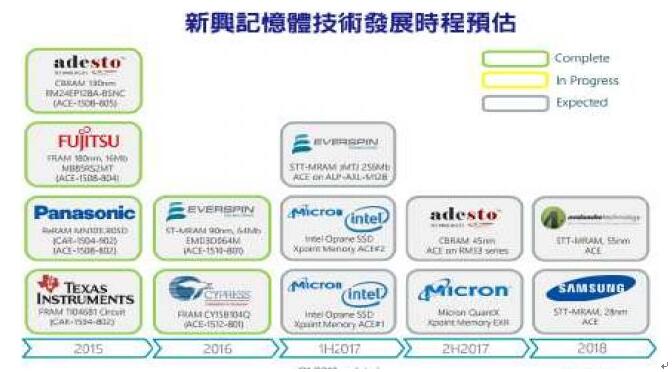 根據研究機構Tech Insights估計,包含FRAM、STT-MRAM、3D Xpoint 、CBRAM等新世代內存,都已陸續(xù)進入小量生產階段。 不過,這些新興內存技術中,除了少數存儲芯片例外,要發(fā)展到能跟NAND Flash、DRAM不相上下的程度,恐怕還需要很長的一段時間,因為DRAM與NAND Flash已具備極為龐大的經濟規(guī)模,即便新興內存技術在性能方面明顯優(yōu)于現有內存,在供貨穩(wěn)定度、成本方面也未必能與現有內存技術相抗衡。