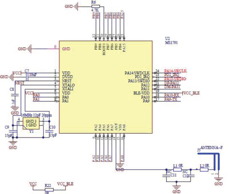 上海巨微MS1791是單模超低功耗藍(lán)牙芯片,射頻采用的是2.4GHzISM頻段的頻率,2MHz信道間隔,符合藍(lán)牙核心規(guī)范4.1。MS1791使用高性能的ARM Cortex-M0為內(nèi)核的32位微控制器,最高工作頻率可達(dá)48MHz,內(nèi)置高速存儲(chǔ)器,豐富的增強(qiáng)型I/O端口和外設(shè)連接到AHB和APB總線。