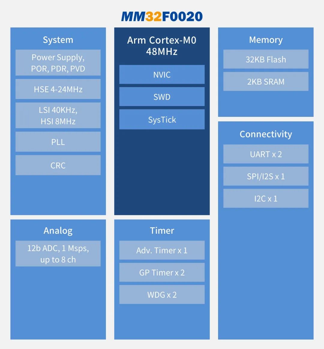 靈動微12寸晶圓打造的全新超值型M0內(nèi)核的MM32F0020系列MCU。該系列32位MCU適用于各類工業(yè)、消費市場和汽車,典型應用包括充電器、電池管理、散熱風扇、煙感、玩具、電機以及8/16位MCU升級替換。