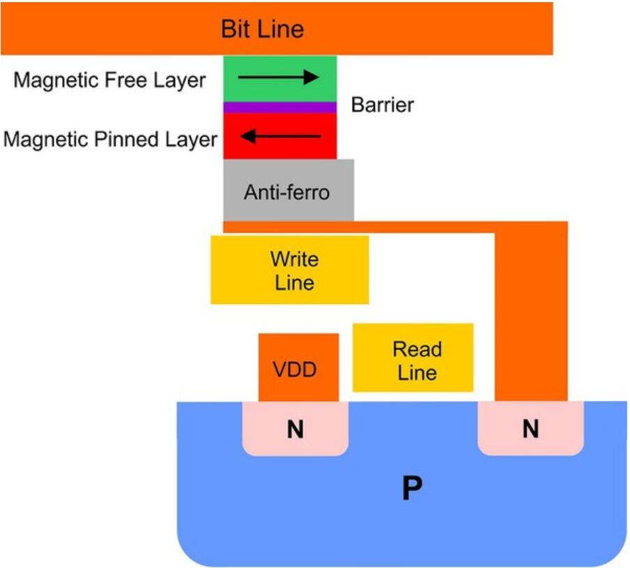 目前有數家芯片制造商,正致力于開發創新出名為STT-MRAM的新一代存儲器技術,然而這項技術仍存在其制造和測試等面向存在著諸多挑戰.STT-MRAM(又稱自旋轉移轉矩MRAM技術)具有在單一元件中,結合數種常規存儲器的特性而獲得市場的高度重視.在多年來的發展中發現,STT-MRAM具備了SRAM的速度與快閃存儲器的穩定性與耐久性.STT-MRAM是透過電子自旋的磁性特性,在芯片中提供非揮發性儲存的功能.