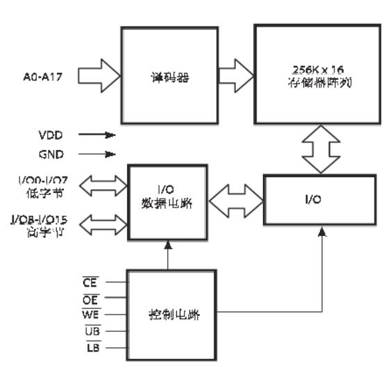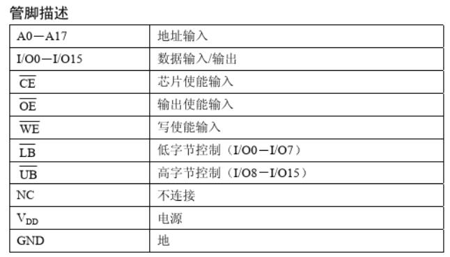 芯片使能輸入CE和輸出使能輸入OE可方便實現存儲器的擴展。低電平有效的寫使能( WE )控制著存儲器的寫和讀操作。高字節(UB)和低字節(LB )控制信號控制著對數據字節的訪問。